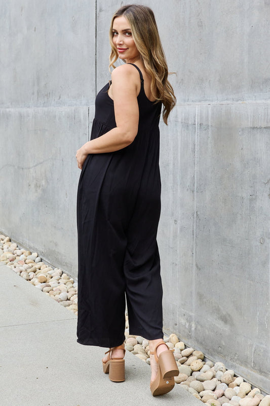 HEYSON All Day Full Size Wide Leg Button Down Jumpsuit in Black